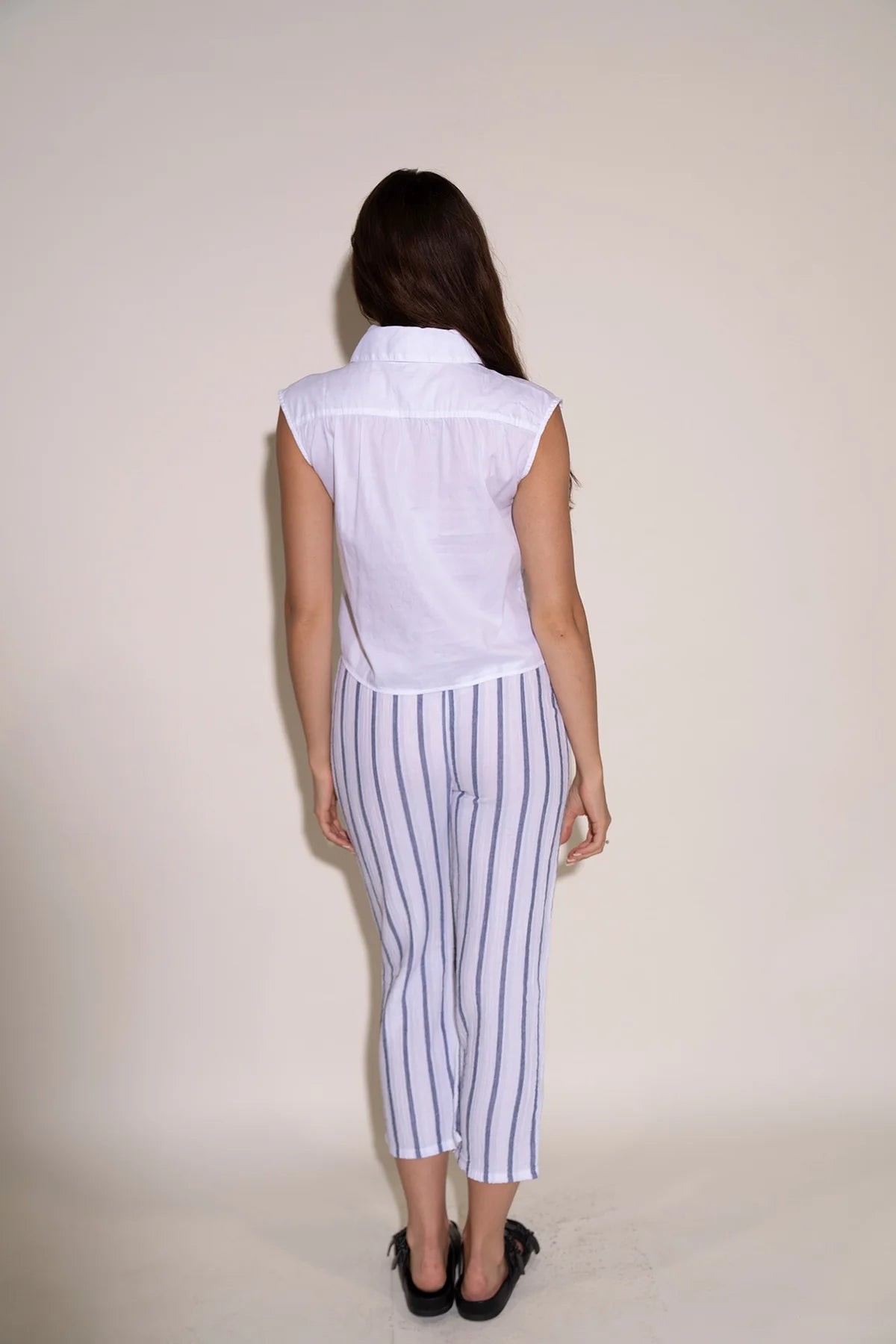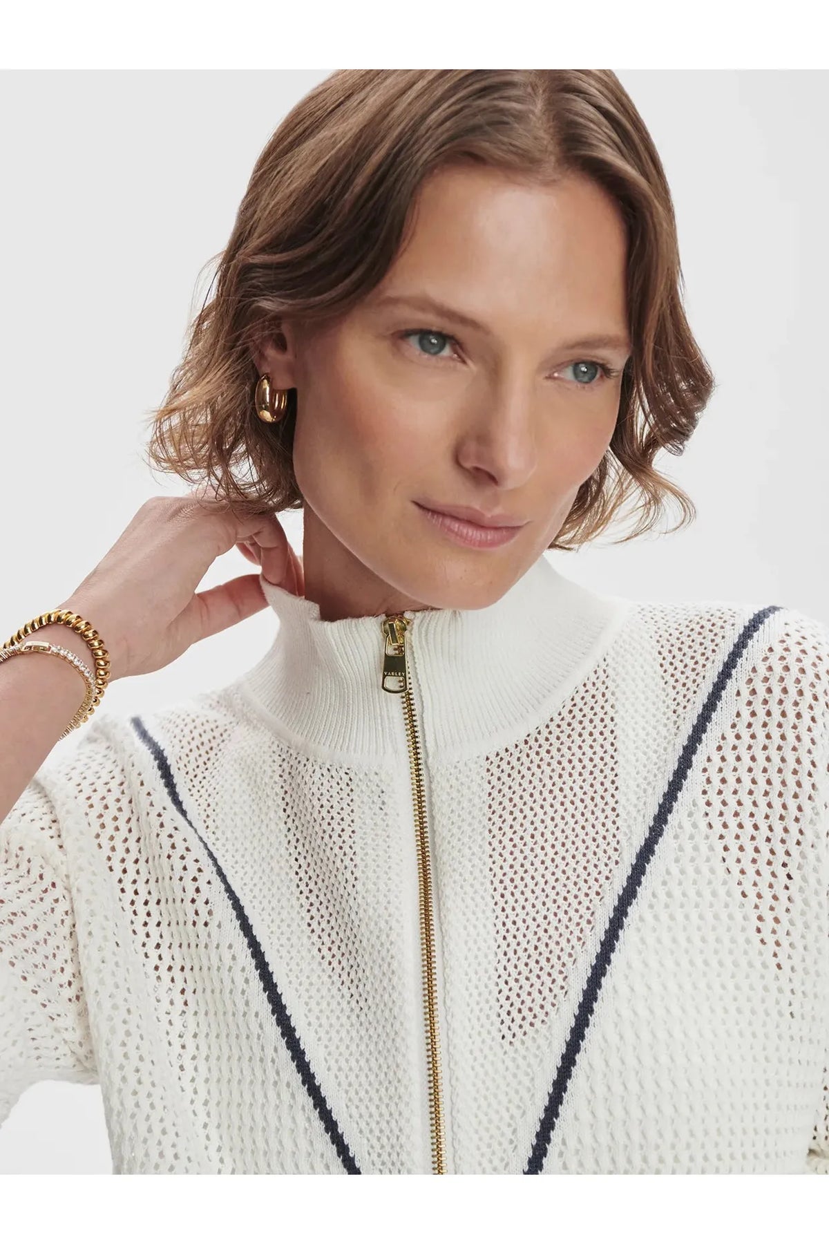 White Stitched Stripe with Navy Aliyah Half-Zip Sweater