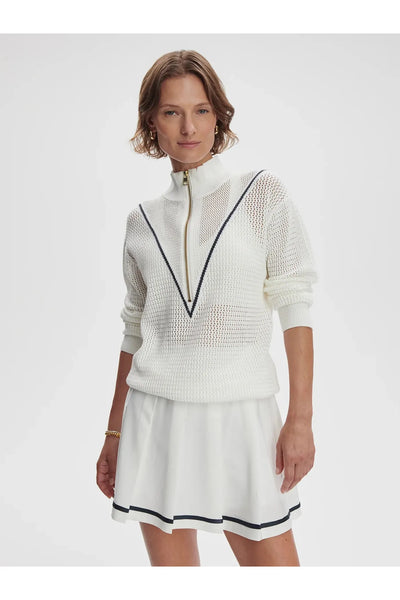 Snow White with Navy Trim Half Zip Calva Knit Sweater