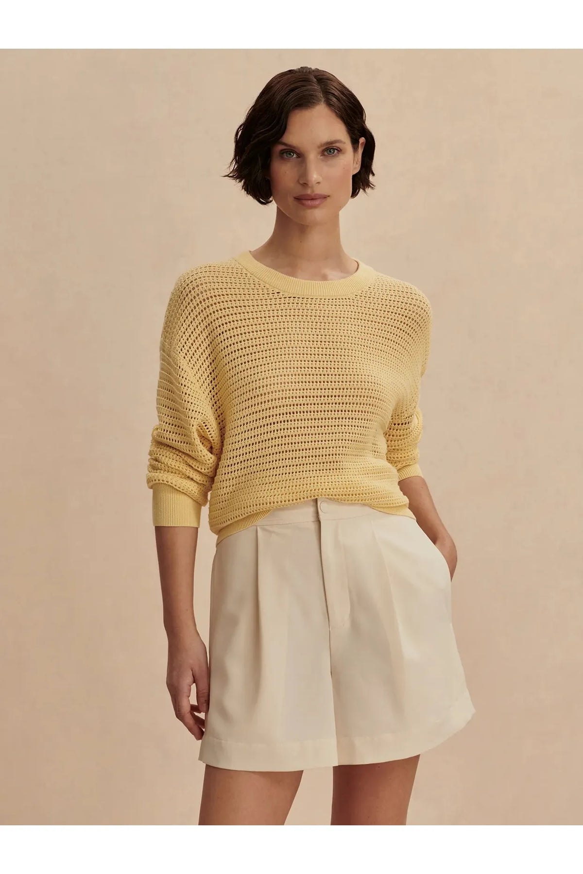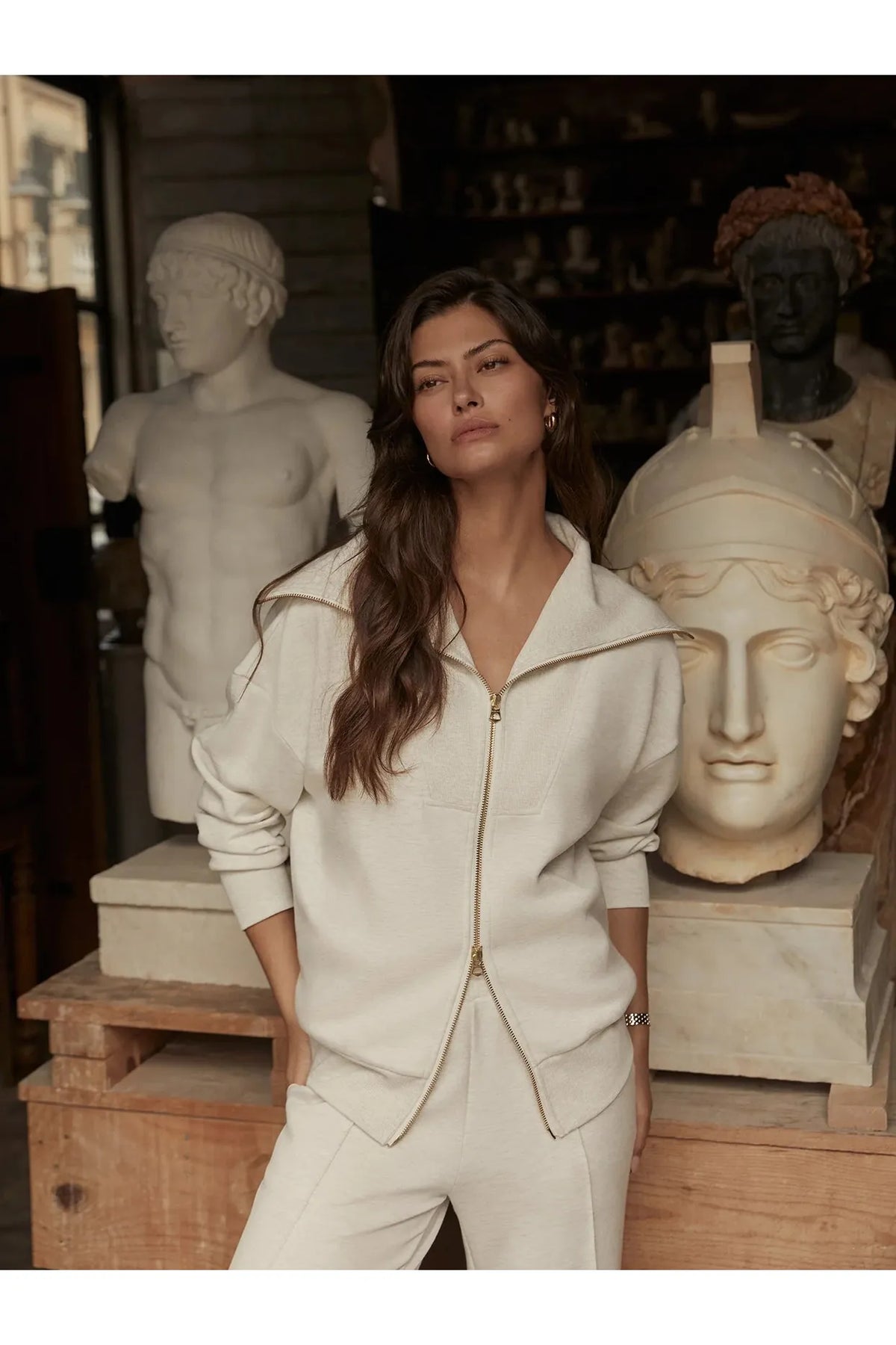 Subtly cropped for versatile styling, this sweater is an essential layering piece. This cropped style is complete with dropped shoulders and deep cuffs. The epitome of laid-back luxury, pair this contemporary top layer with coordinating sweatpants. By Varley. Pair with your favorite Carrie Dunham bag and cover.