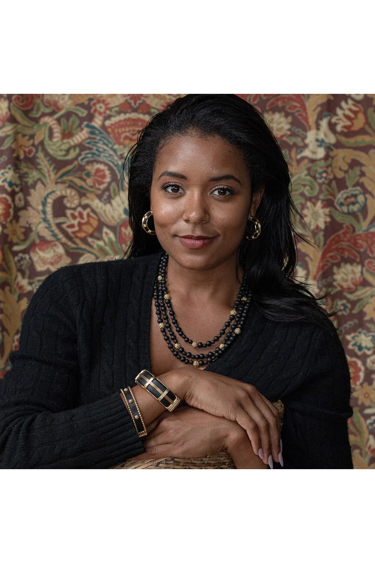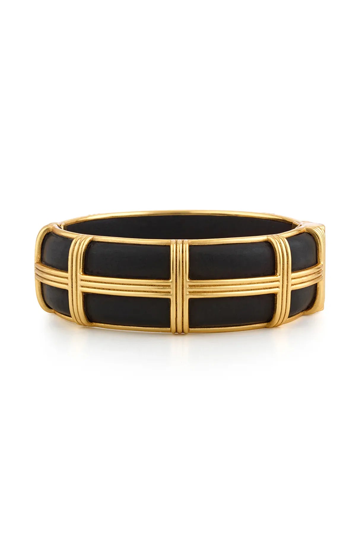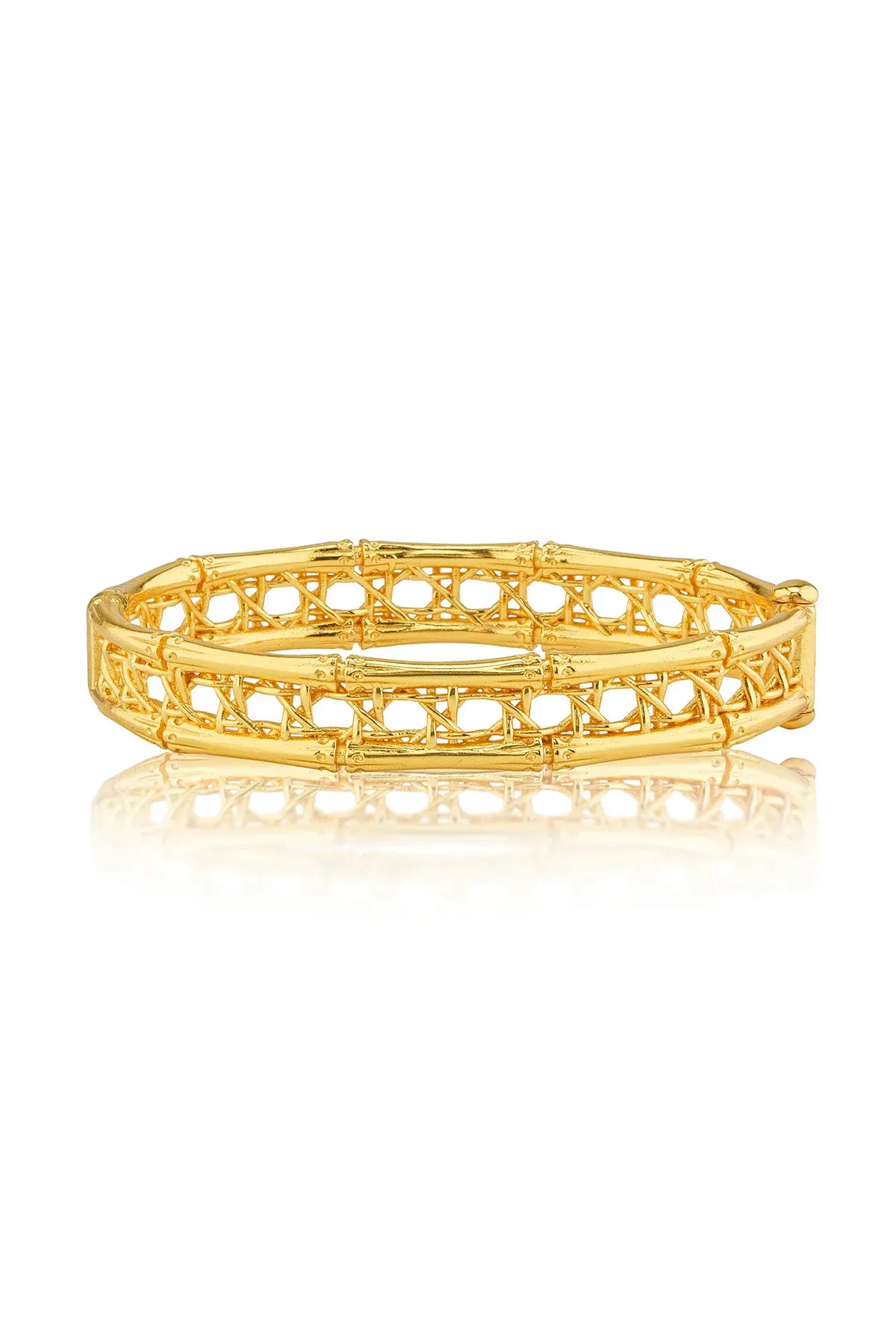 Elevate your everyday looks with the radiant allure of this bamboo hinged bangle, now in 4 new beautiful hand painted enamel colors. Crafted from sumptuous 18k gold-dipped brass, the bangle is sculpted to perfection, adorned with sparkling crystals that catch the light with every movement. Its secure hidden clasp, reminiscent of the finest jewelry craftsmanship, ensures both elegance and ease of wear, making it a refined accessory for any occasion. In the realm of accessories, this bamboo hinged bangle stands out as an exceptional piece of artistry. The intricacy of the sculpted design and the shimmering crystals culminate in a perfect union of glamour and versatility. The hidden clasp adds an element of mystery and refinement, making this bangle a stunning addition to your collection. Whether paired with casual or formal attire, it promises to be the perfect touch of sophistication, adding a radiant sparkle to your daily ensembles.
