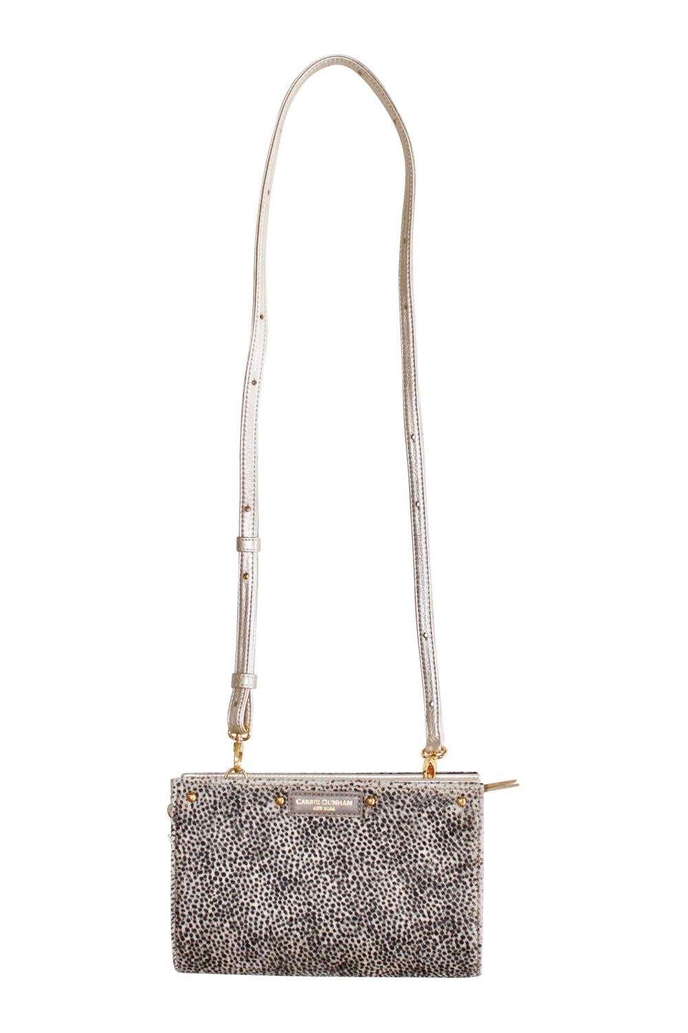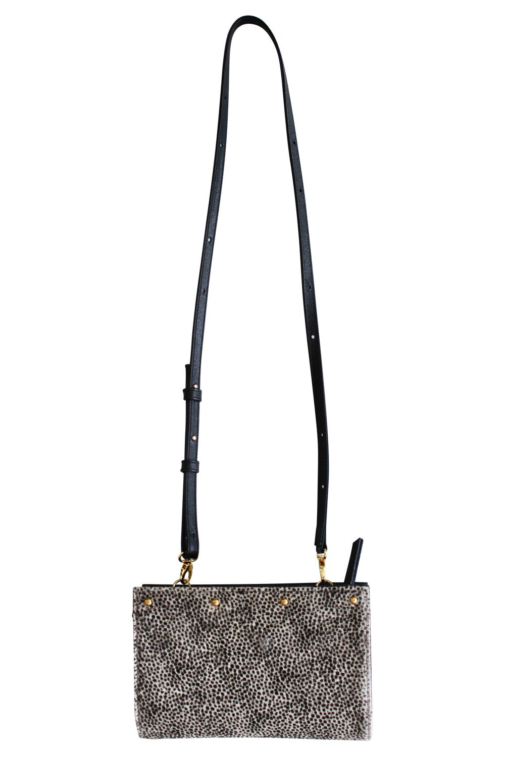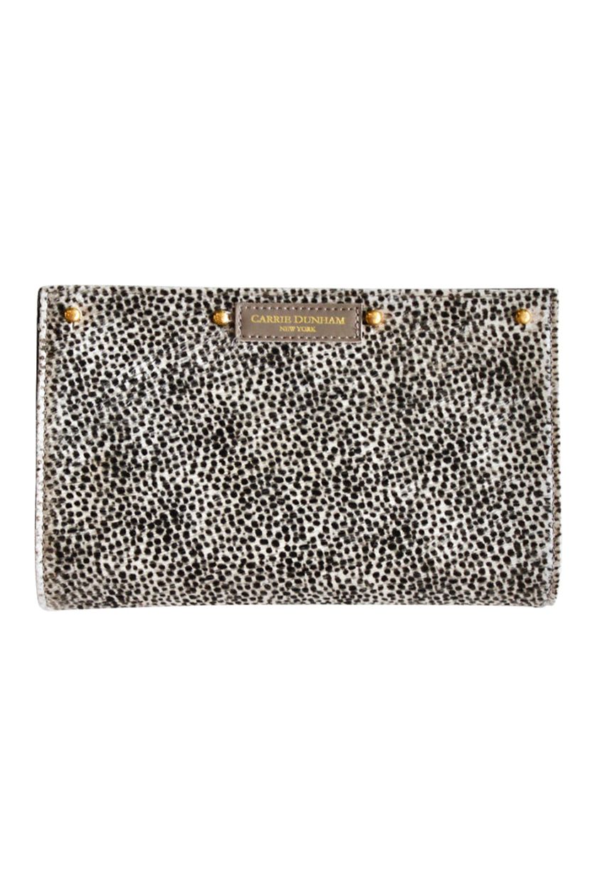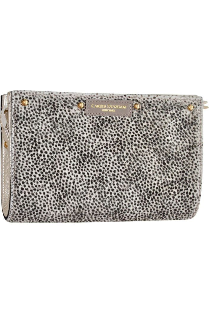 Shaker Hair on Hide Winter White & Black Dots Tassel Clutch