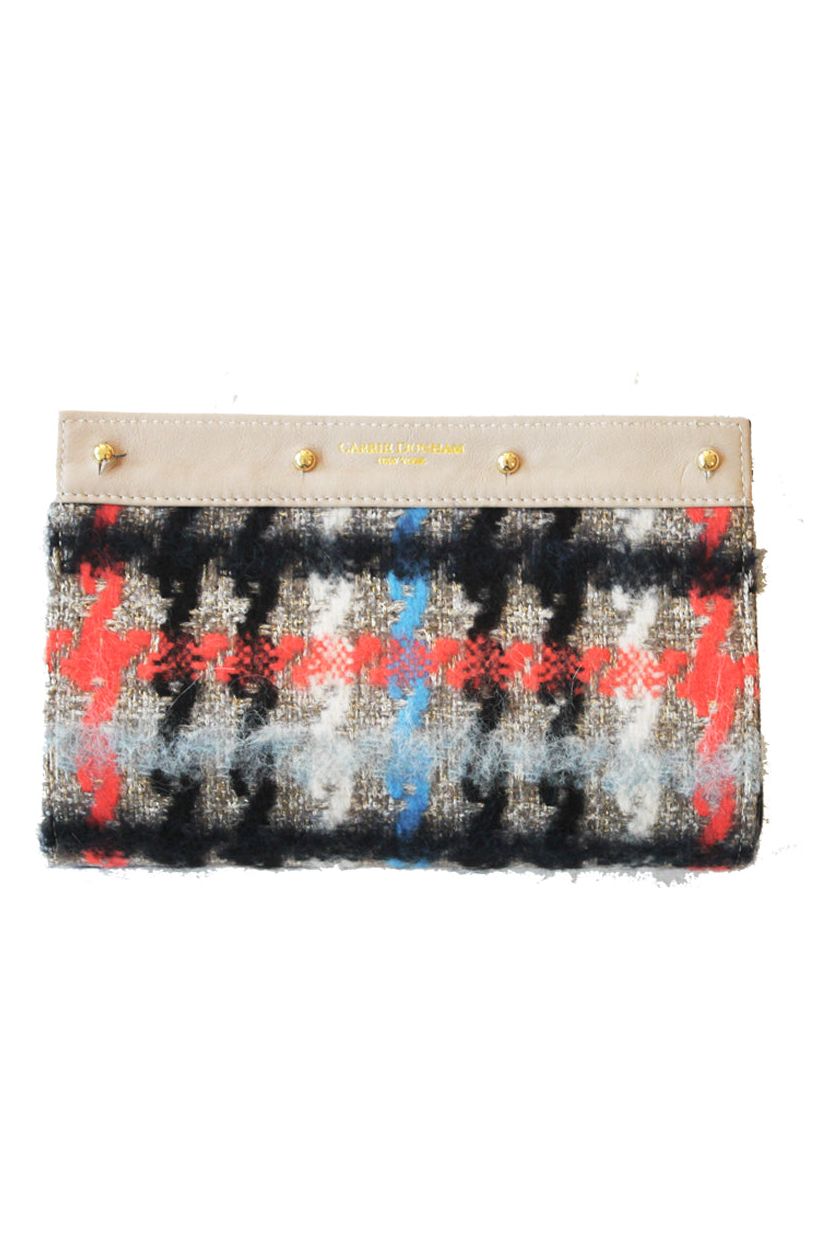Lizzie Reversible Clutch Cover: Black Hair on Hide to Stewart Holiday Plaid