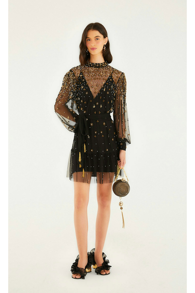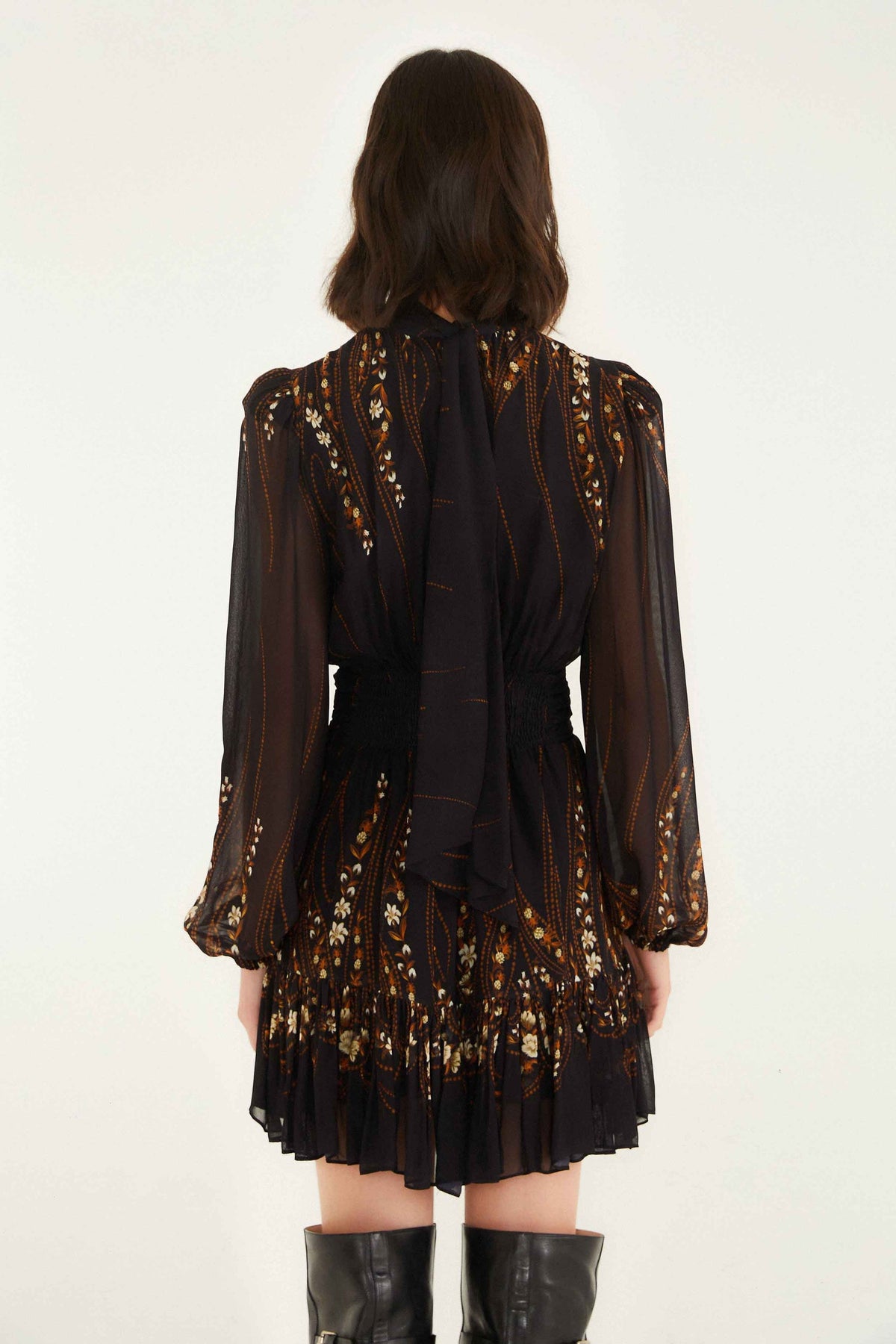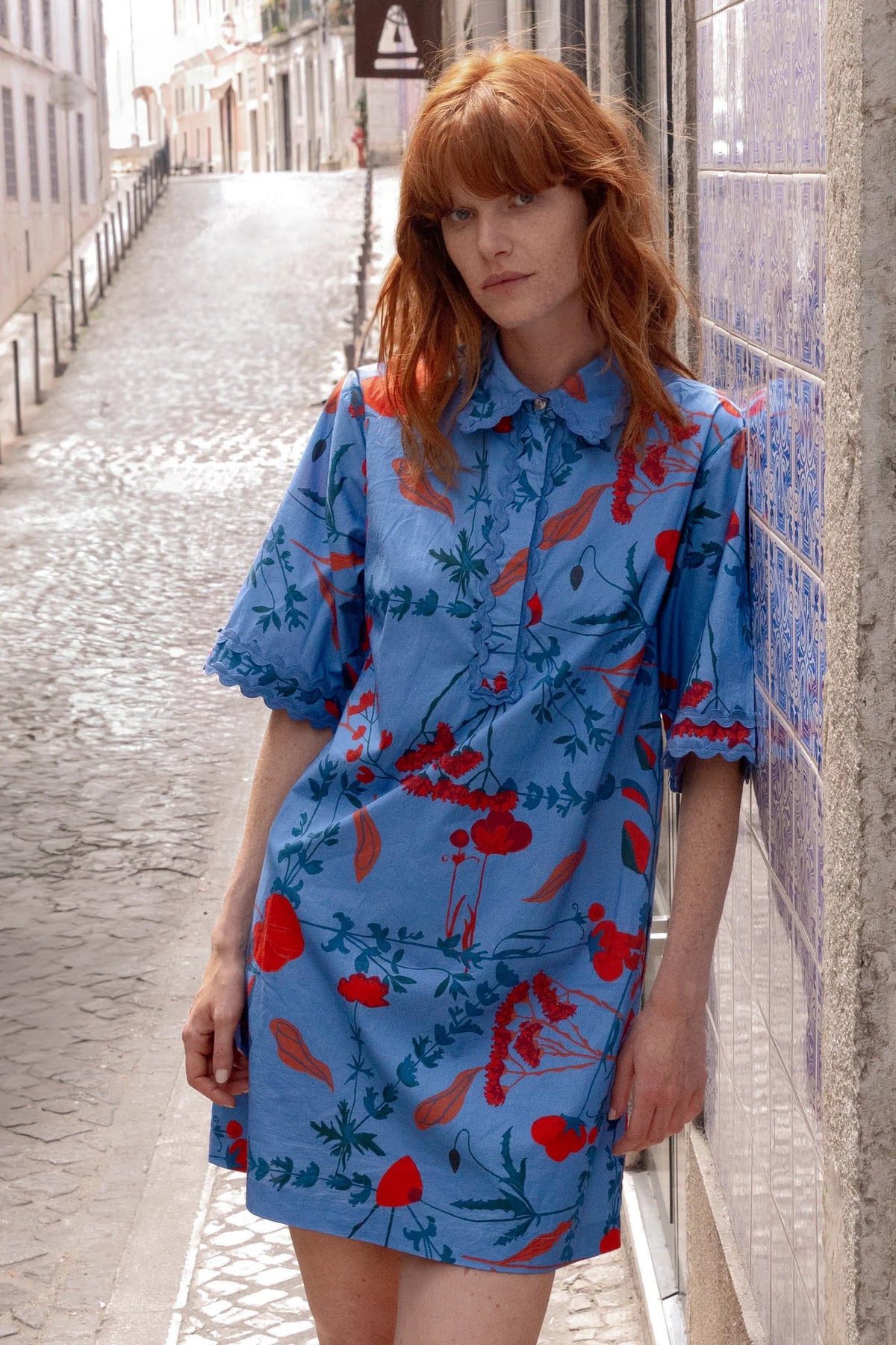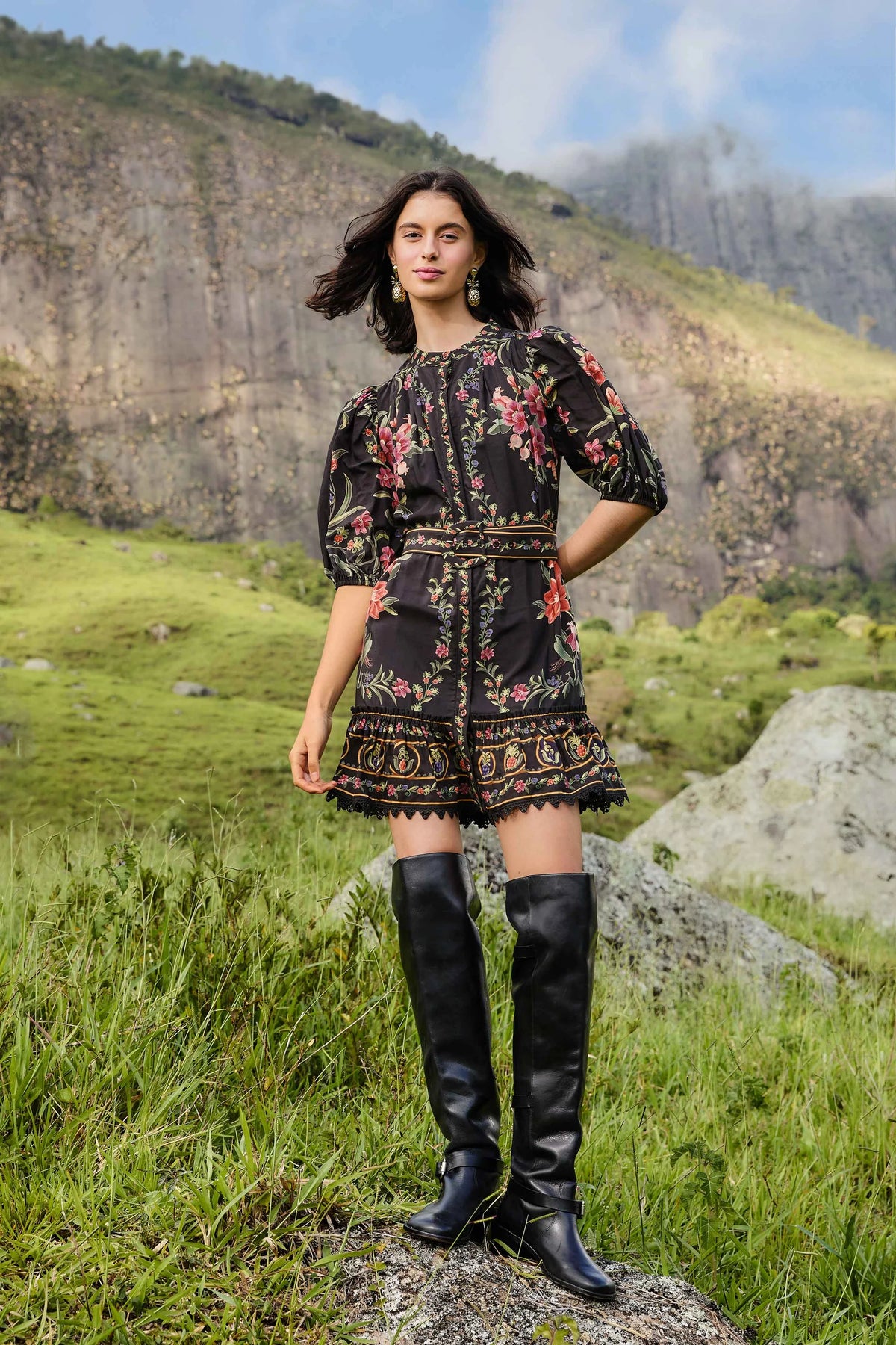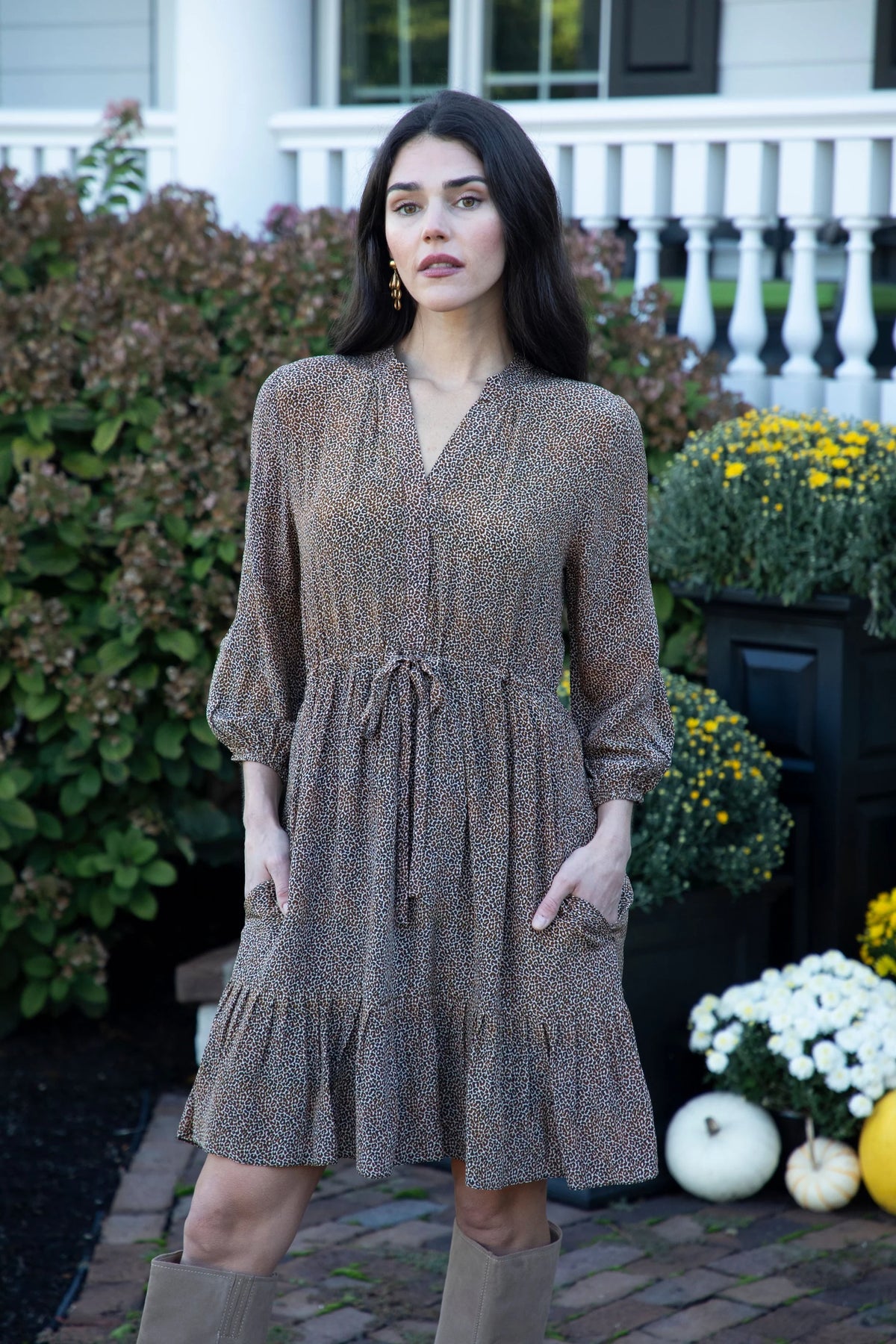 Embrace a gentle rustle of warmth with this Long Sleeve Maxi Dress. Its high neckline elegantly frames the face, while the flowing silhouette cascades in soft tiers, evoking whispered breezes. The rich macaw-inspired print blends earthy creams, ochres, and subtle blues, bringing playful vibrancy to every movement. Delicate puffed sleeves gather softly at the wrists, adding romance and charm to this enchanting maxi dress. By Farm Rio. Pair with your favorite Carrie Dunham bag and cover.
