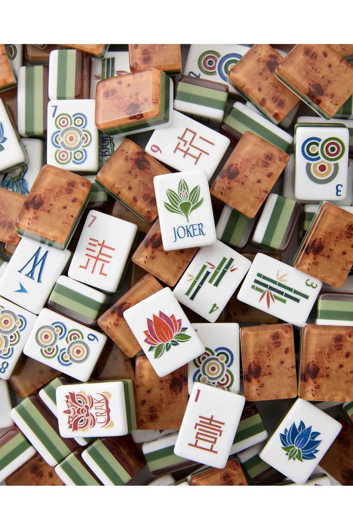 Introducing the Man-Jong Heritage Collection: A bold and refined set of mahjong tiles for those who admire the rugged beauty of nature. Crafted from durable acrylic, each tile showcases a printed burl wood image on the back, complemented by layers of deep sage, hunter green, and rich forest tones for a perfectly balanced, earthy palette.