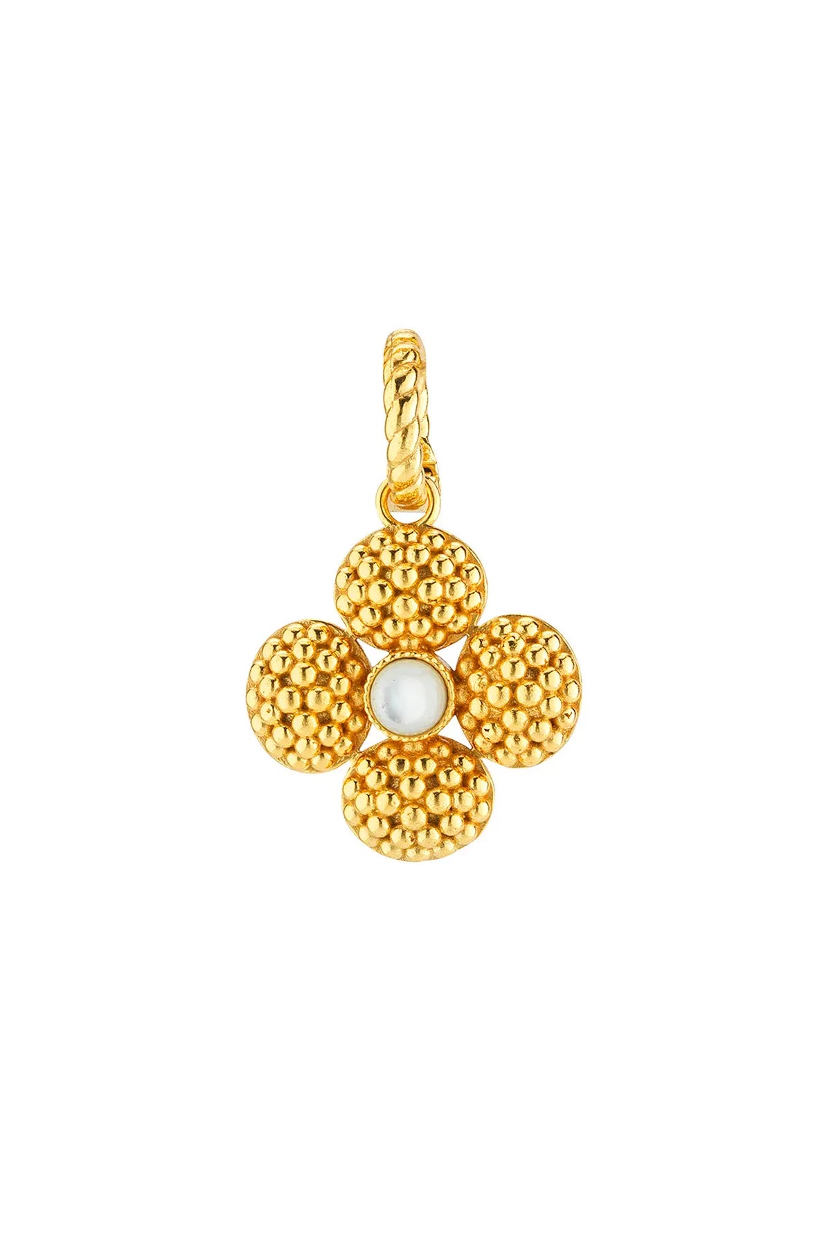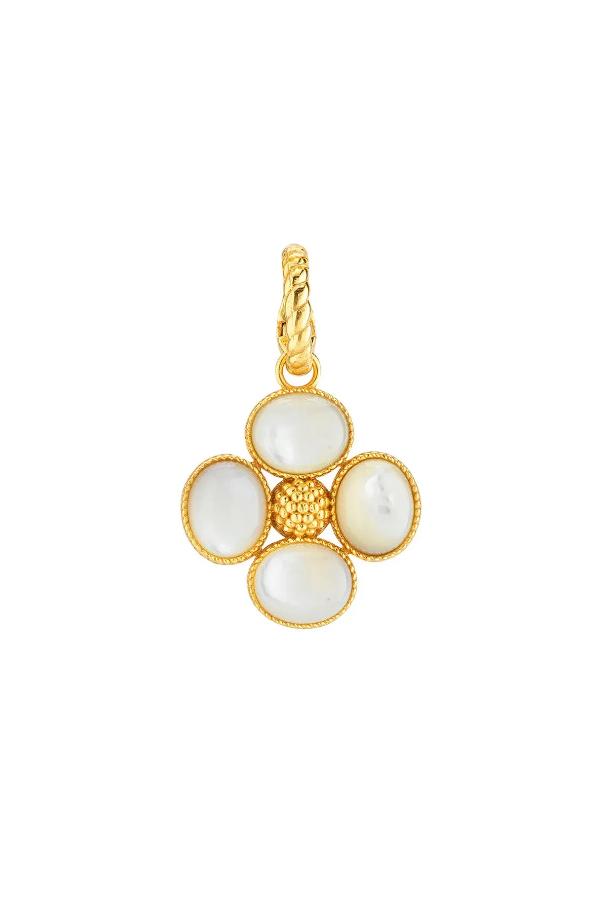 A luminous little charm of luck and beauty, the clover pendant transforms any chain into a talisman of good fortune. Crafted with glowing orbs of natural mother-of-pearl and a signature berry icon, this double-sided pendant is designed to be worn either way—mother-of-pearl for ethereal glow or golden berries for radiant texture—this exquisite piece makes a delightful gift for someone dear, yourself included.