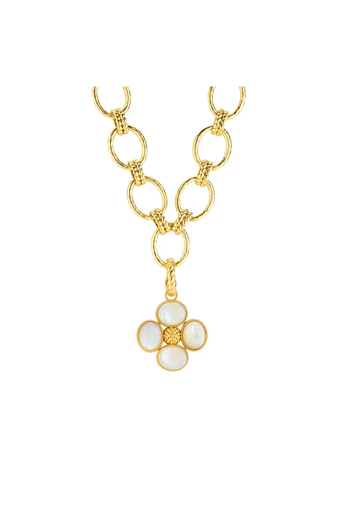 MOP Clover Double Sided Pendant on Gold 24" Bead Chain