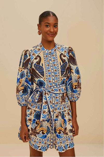 This Organic Cotton Mini Dress is a delightful blend of vibrant colors and dreamy patterns. Featuring a charming square neckline, this piece showcases intricate blue and yellow floral motifs that dance across its responsibly crafted fabric. The playful ruffled sleeves and relaxed silhouette add a touch of whimsy, making it perfect for joyful gatherings or serene strolls. Embrace the spirit of warmth and playfulness with this captivating piece. By Farm Rio. Pair with your favorite Carrie Dunham bag for a complete look!