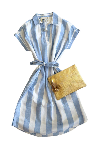 Days spent soaking up the warm spring sunlight call for a breezy, versatile dress like this collared oxford number. The soft oxford fabric feels fresh against your skin with a lightweight, breathable texture ideal for those first warm days. Pair it with sandals for a picnic date or dress it up with wedges for Sunday brunch. The flattering button-up design with a classic collar gives an effortlessly chic touch, while the timeless sky blue stripes feel perfectly on-trend for Summer. By Duffield Lane. Pair with your favorite Carrie Dunham bag and cover!