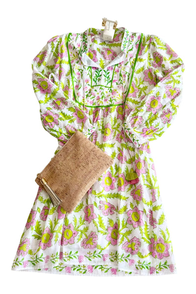 Make a statement in the Deauville Short Dress. Featuring a wide collar, drop waist detail, and breezy lightweight cotton fabric, whether you're attending a summer party or dancing under the stars, this dress is sure to turn heads. By Ro's Garden. Pair it with your favorite Carrie Dunham bag and cover for a complete outfit!