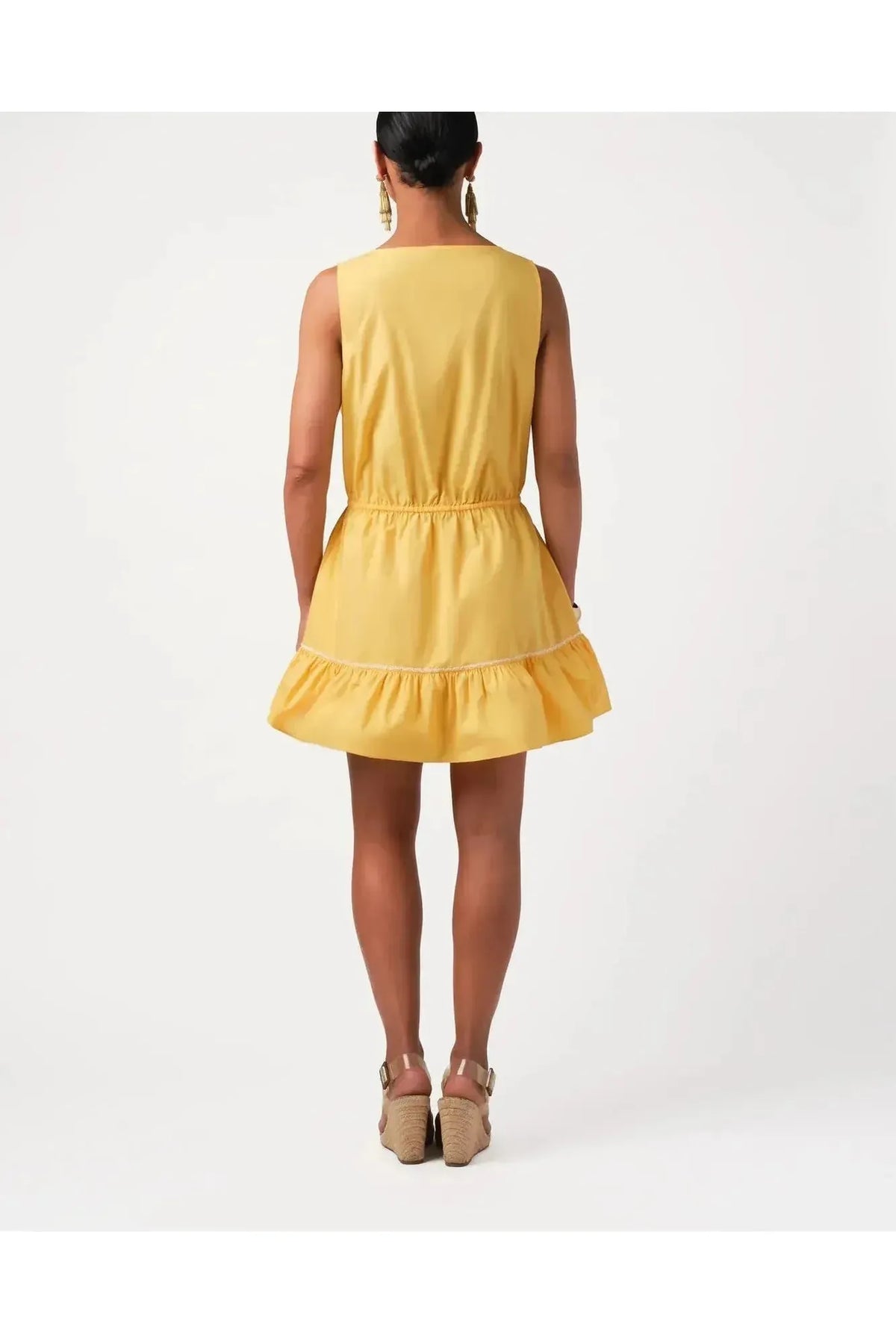This Mini Dress is a match for warm weather. It features tie-back straps for an adjustable fit, plus a tiered flounced bottom and a subtle high-low hem for a playful touch. Transition it from day to night with a little help from your favorite accessories.