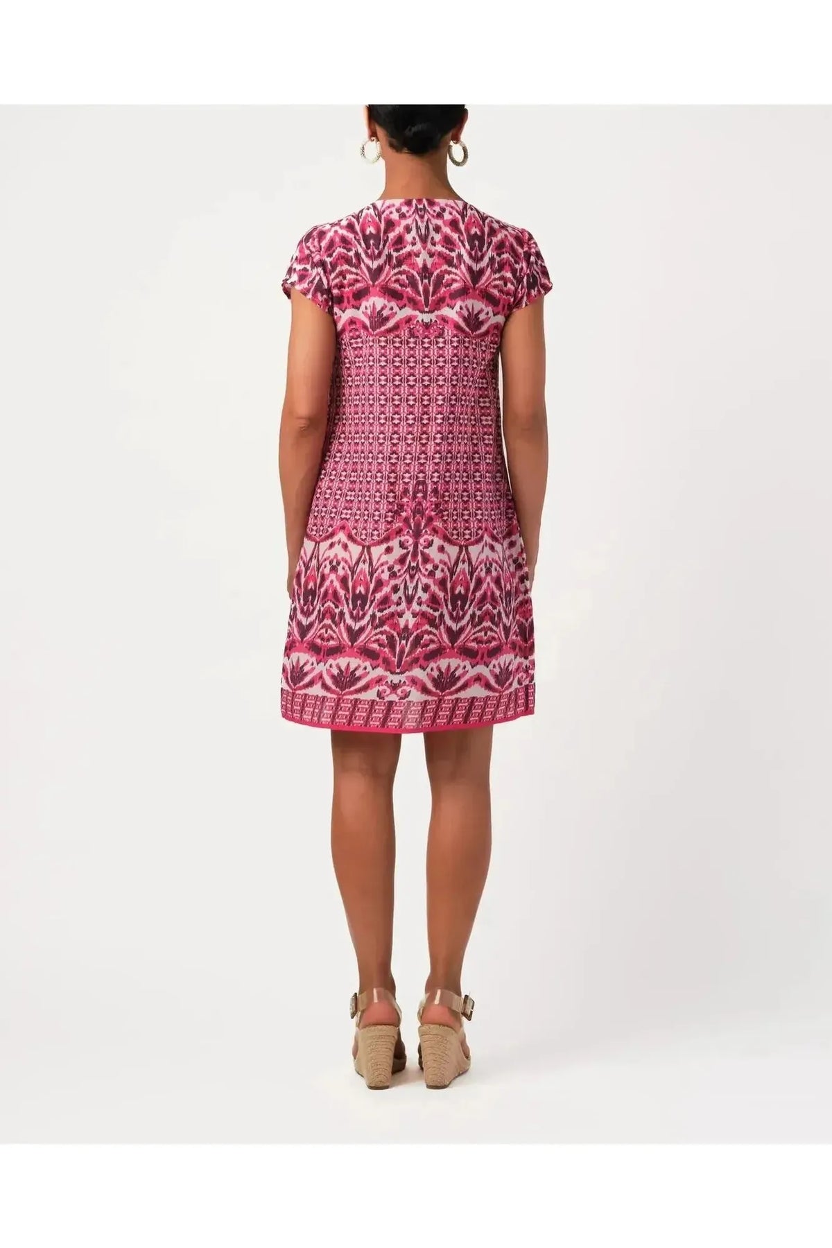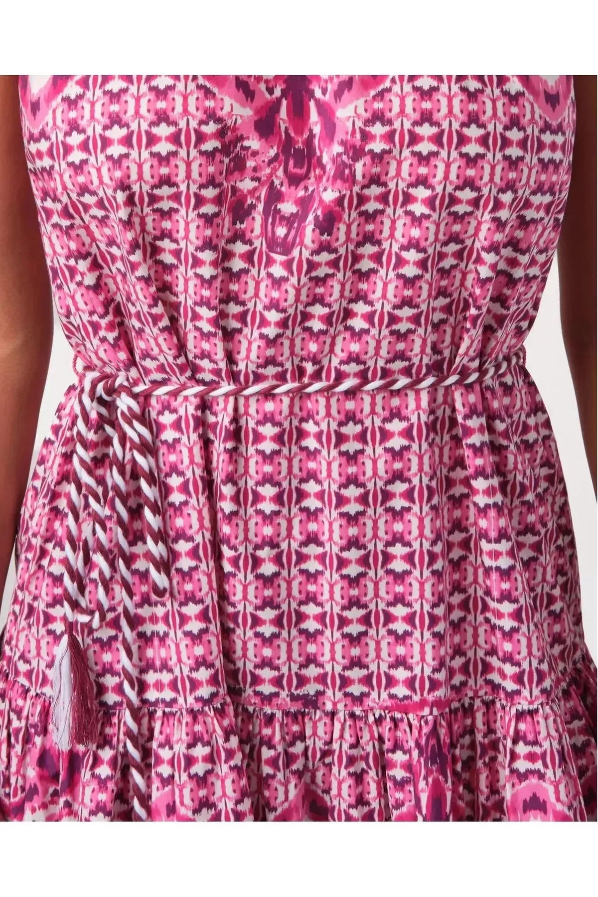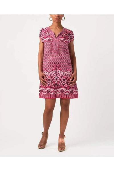 A buttery soft rayon tencel fabric printedhigh neckline mini dress with drawstring waist. By Bell by Alicia Bell. Pair it with your favorite Carrie Dunham bag.