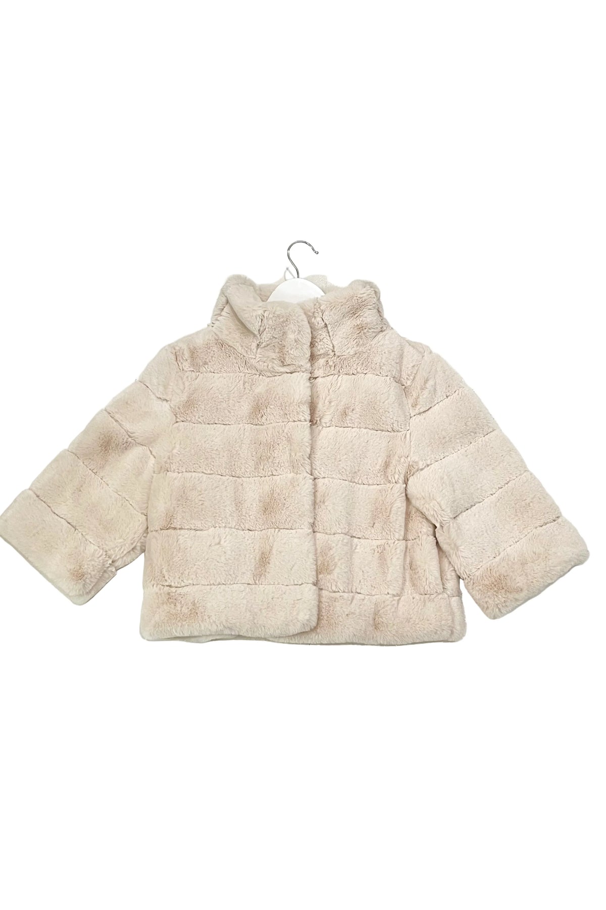 This faux fur jacket is a gorgeous addition to your winter wardrobe. The 3/4 sleeve is chic and perfect over sweaters or a cocktail dress. It features hidden hook closures and is fully lined. By Patty Kim. Pair it with your favorite Carrie Dunham bag to complete your look!