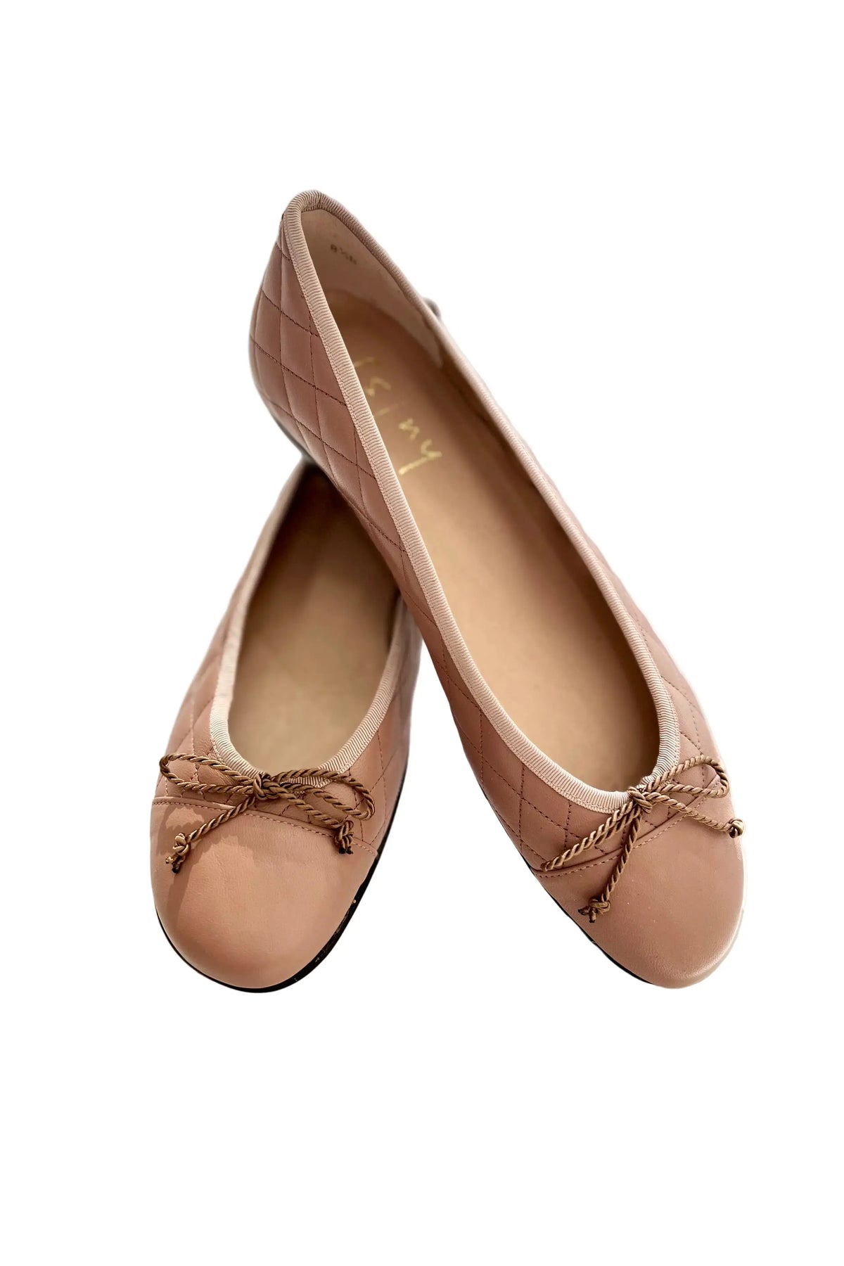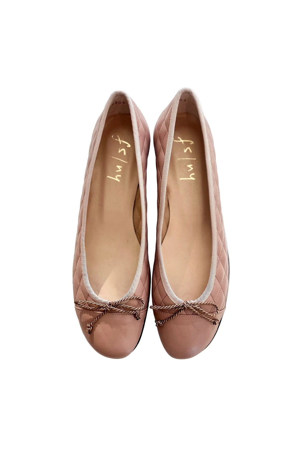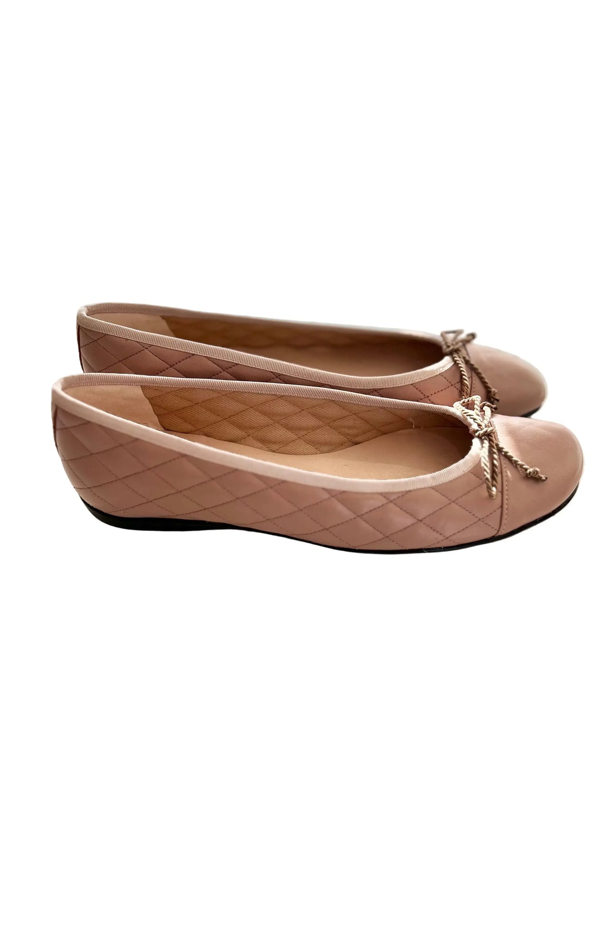A most comfortable Spanish ballet flat. This has luxurious quilted leather features, a leather cap toe, and an adjustable drawstring bow. This ballet flat is the epitome of class and sophistication.