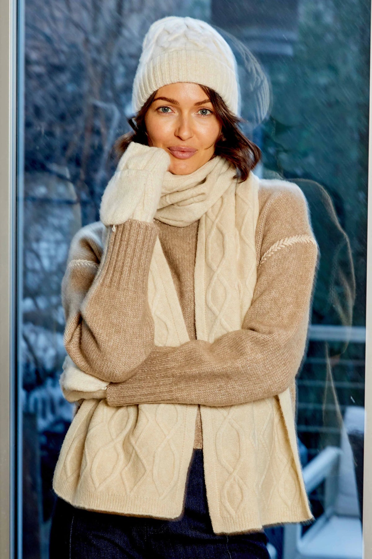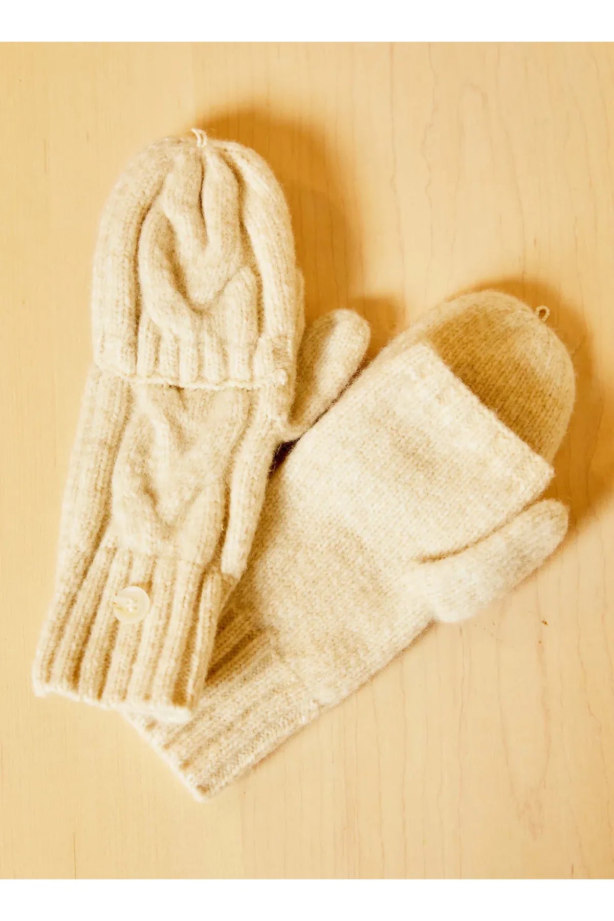 These warm and cozy mittens are a basic in everyones wardrobe. They feature a cable knit detail and flaps to keep your fingers warm.