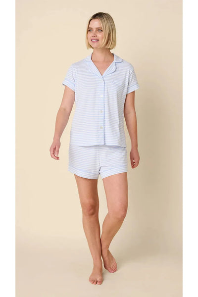 Heavenly Blue Stripe Pima Cotton Knit Short Pajama