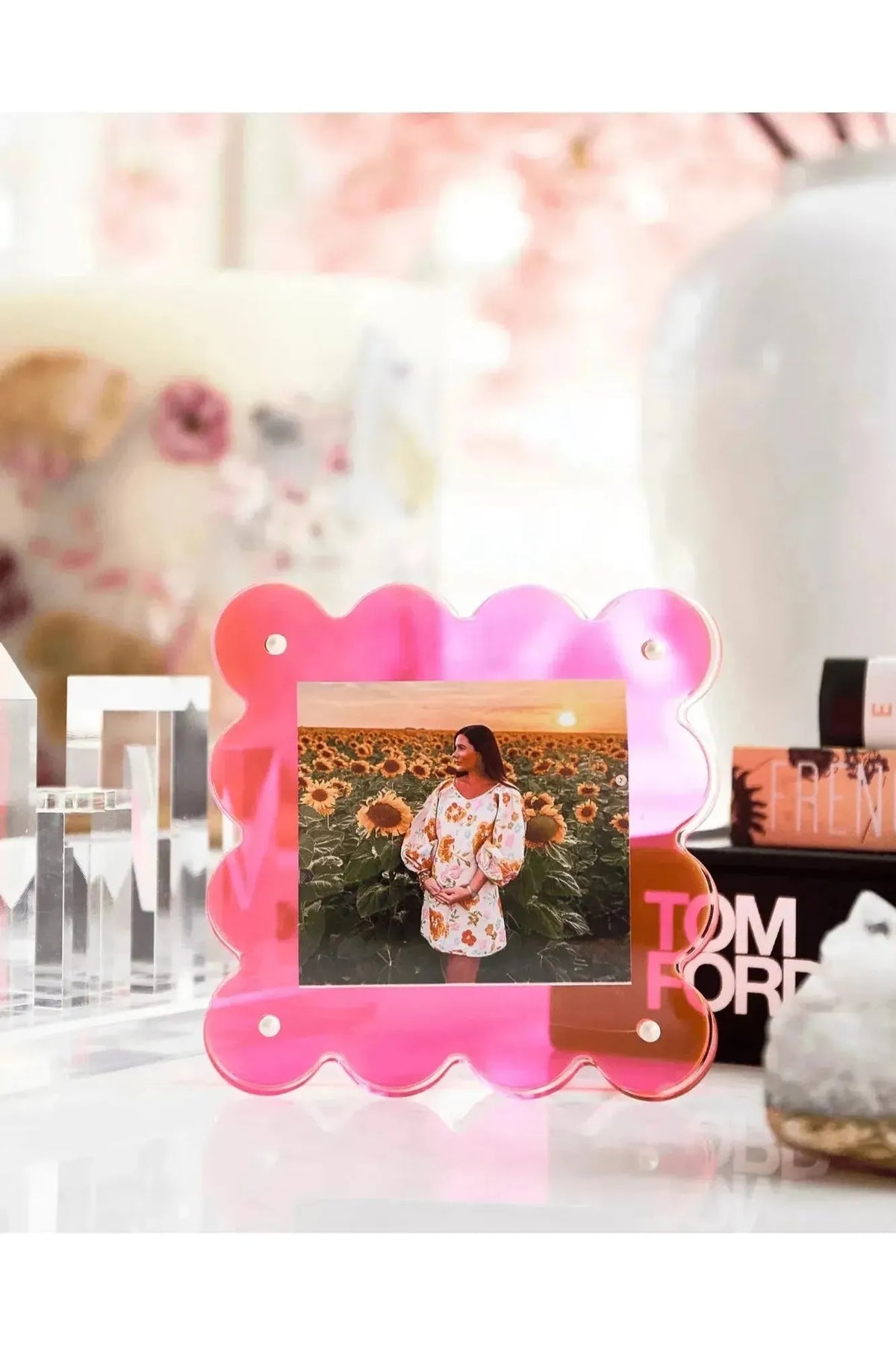 Show off your memories in a unique way with this Mini Acrylic Picture Frame! This acrylic scalloped frame adds a playful touch to your photos, making them stand out in any room. Great for nightstands, and desks plus they make for the perfect gift!