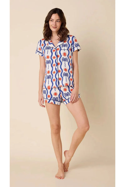 Royal Blue & Bright Flame Sun Print Pima Short Pajama