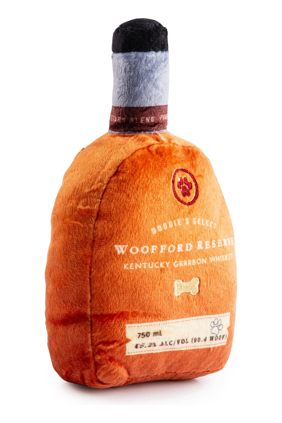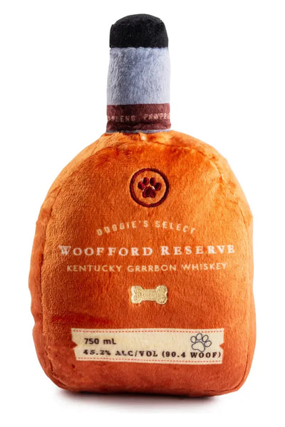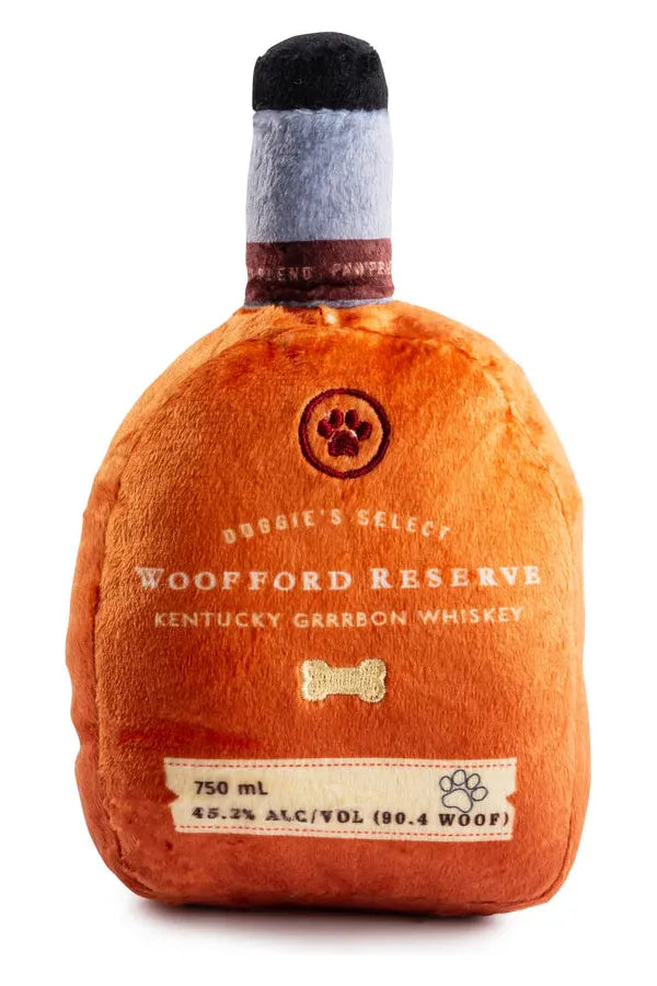 Bourbon toy! This plush drink is a top-shelf favorite, featuring gold embroidery on the back that reads "Whiskey Business." Perfect for pups who love chewable cocktails, it’s equipped with a squeaker, crackle texture, and reinforced mesh lining for long-lasting fun. From fetch to cuddle time, this classy bourbon bottle toy will have your pup sipping on endless fun. Cheers to good times and wagging tails!